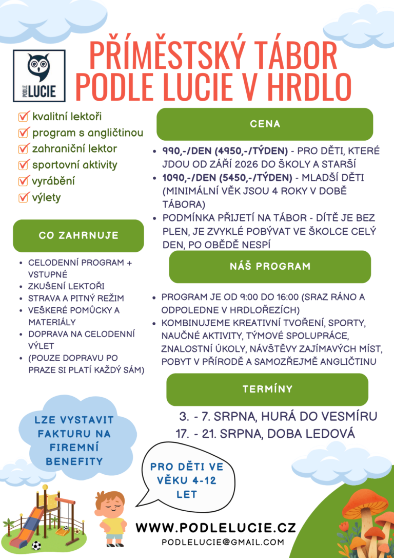 Vzdělávací projekt Podle Lucie IČO: 05315662, se sídlem na adrese Českobrodská 71/30, 19000 Praha 9 – Hrdlořezy.